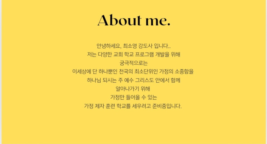 이 학교는 가정 단위로 등록이 가능한 학교이다. 1인 가정으로 싱글도 참여가 가능하다. 위에 보이는 사진은 학교 교실 정면 모습이다. 우리는 12주 동안 하나님 아버지의 마음, 다림줄 등등 주요 기독교적 토픽을 부부가 강의를 함께 듣는다. 그동안 유아들은 유아방에서 청소년들은 가지고 온 자습서로 홈스쿨링을 받게 된다. 10시부터 3시경까지 인클라스 수업을 마치고 나서 순번대로 저녁을 공동으로 준비하고 식사교제에 들어간다.